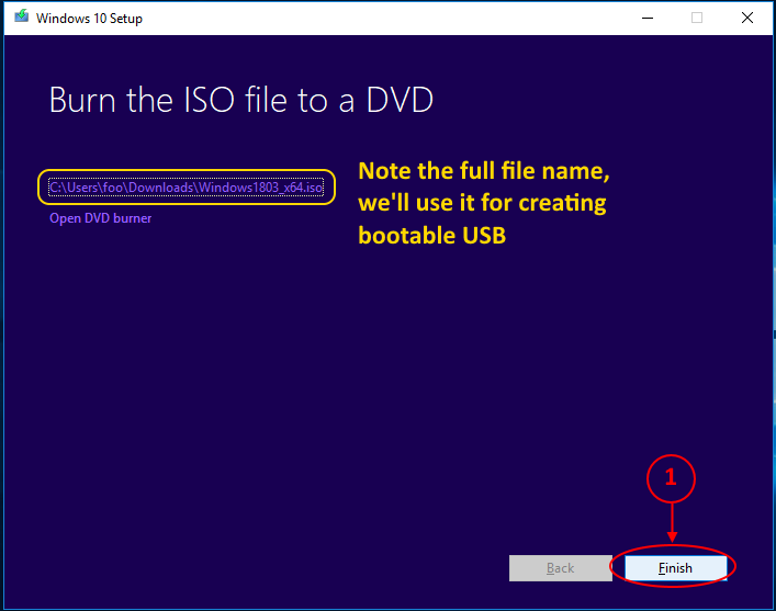Edit this page Discussion Backlinks Fold/unfold all Rename Page STEP 1. Visit MS site Download media creation tool from official MS site. Navigate to https://www.microsoft.com/en-us/software-download/windows10 Click “Download tool now” button Click “Save File” button in popup window attachment STEP 2. Run the tool Run the tool and… wait for the next screen attachment STEP 3. Read license terms Read all hundred+ pages of this legal bullshit Click “Accept” button attachment STEP 4. Installation method Click “Create installation media”. We need ISO file. Click “Next” button attachment STEP 5. Windows type selection Language - select whatever language you want. My choice is English. Edition - we need Windows 10 Architecture - 64-bit (x64). Never select x32 for your rig! Click “Next” button It's possible to install any additional language later. I would recommende to complete installation steps with English and switch to your preferred language after that. Here is an excellent instruction on how to install additional interface languages for Windows 10. attachment STEP 6. Media type selection ISO file - It's up to you, but I prefer ISO files. At least I can save it and keep it for my next projects if any. Architecture - 64-bit (x64). Never select x32 for your rig! Click “Next” button attachment STEP 7. Naming ISO file Select a path for saving your ISO. Remember it ;) Give the file a meaningful name. Just imagine that you have several ISO files in one location and you have to tell them apart from each other. Just use build number and architecture. Click “Save” button attachment STEP 8. Downloading Just wait. It depends on your internet connection. File size is approx 4Gb attachment STEP 9. Finish Remember or note location of the file and click “Finish” button attachment Continue to the next step “Creating bootable USB drive” Log In Detach Close This topic does not exist yet You've followed a link to a topic that doesn't exist yet. If permissions allow, you may create it by clicking on “Create this page”.